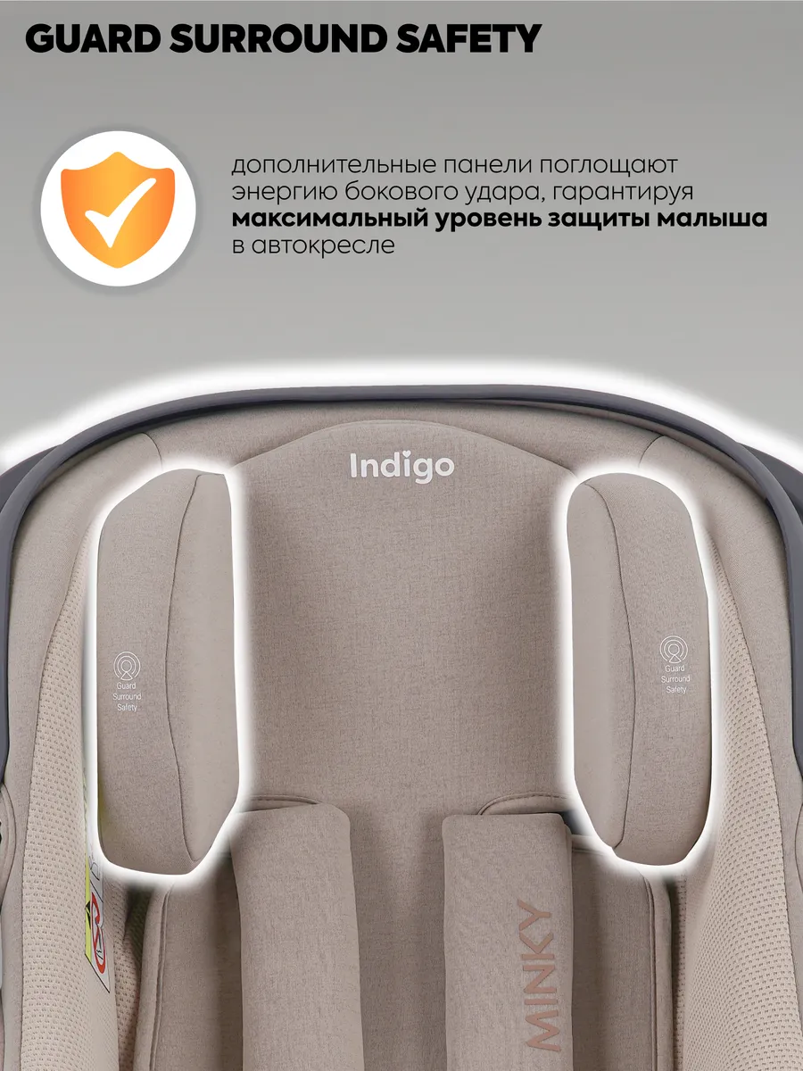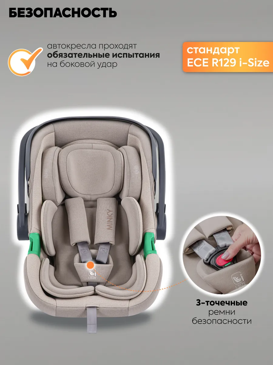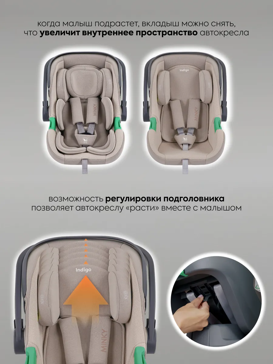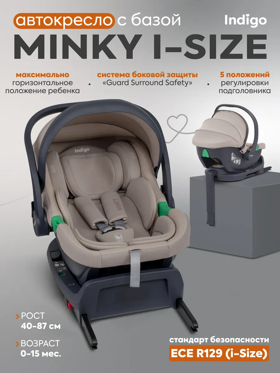 Автокресло Indigo MINKY I-SIZE с базой isofix (Индиго Минки ай сайз) - детское автокресло - переноска для ребенка с рождения до 15 месяцев, соответствующее последнему стандарту безопасности i-size. Стандарт безопасности i-size подтверждает безопасность кресла, проверку автокресла на боковой удар и более широкое сидение, позволяющее использовать его дольше.