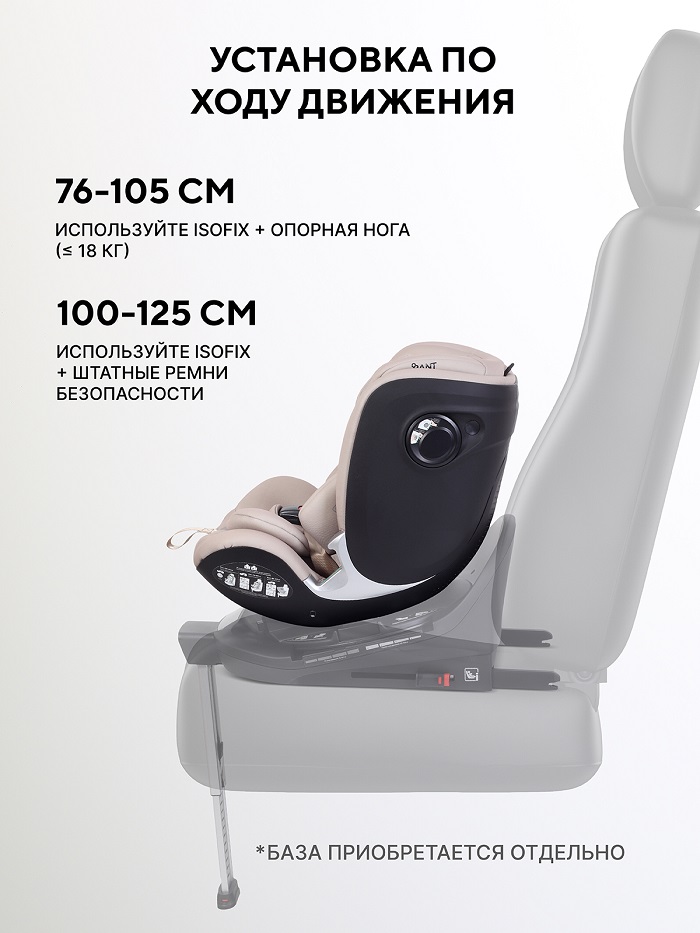 - Установка в машину только с помощью базы изофикс (покупается отдельно).