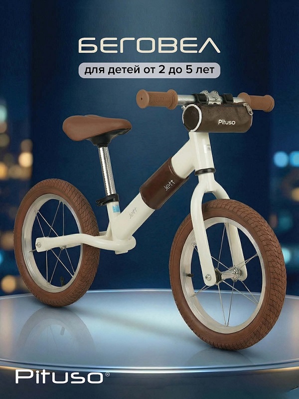 Беговел PITUSO Jett (питусо джет) - детский качественный беговел для ребенка от 2 до 5 лет. Главное его преимущество в надежной раме и больших надувных колесах. Ребенок сможет ездить по любым дорогам и бездорожью, с легкость преодолевать препятствия на своем пути, не переживая за комфорт. Алюминиевые обода, надувные колеса и спицы - идеальное решение, если нужен качественный беговел с хорошим накатом и хорошим преодолеванием препятствий.