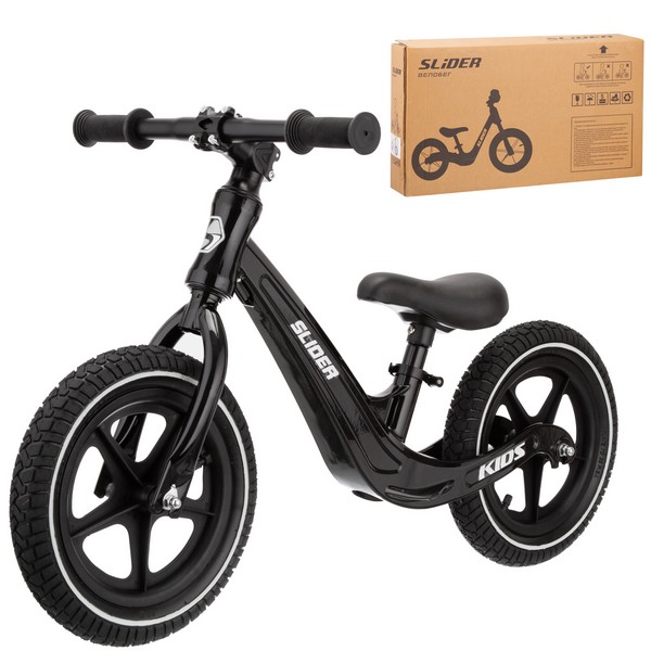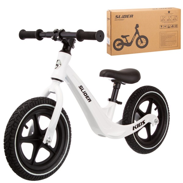 Беговел Slider 12d с надувными колесами (слайдер) - велобег с идеальным составом: надувные колеса для мягкости хода, магниевая рама, обеспечивающая легкий вес модели, регулируемое под рост ребенка сидение. Беговел имеет оригинальную геометрию рамы, которая придает беговелу стильный внешний вид, при этом выдерживает большие нагрузки.