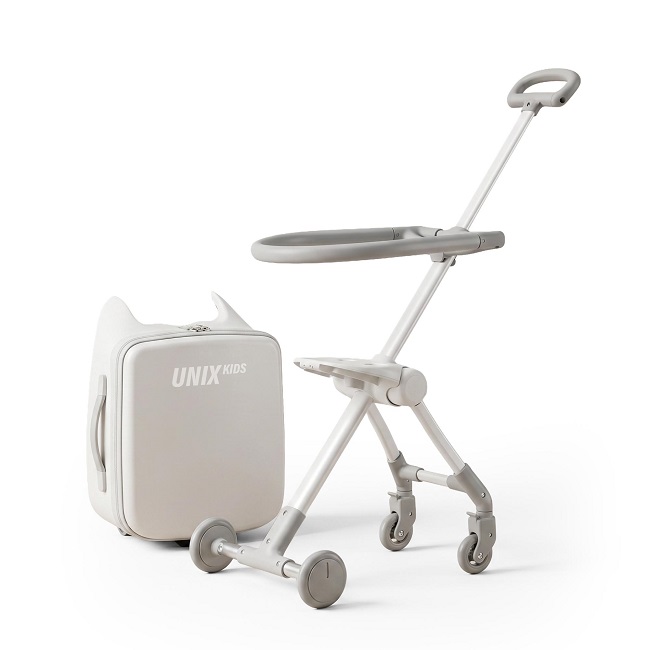 Чемодан UNIX Kids способен быстро менять амплуа, превращаясь из детской тележки в удобный дорожный чемодан. Багаж можно носить вертикально за боковую ручку или катить рядом, держа за телескопическую ручку. Чтобы отсоединить чемодан от тележки, достаточно нажать одну кнопку на корпусе, и тележка отсоединится. Продуманное внутреннее пространство чемодана позволяет разместить всё, что нужно для пикника или отдыха на природе.