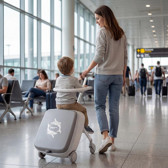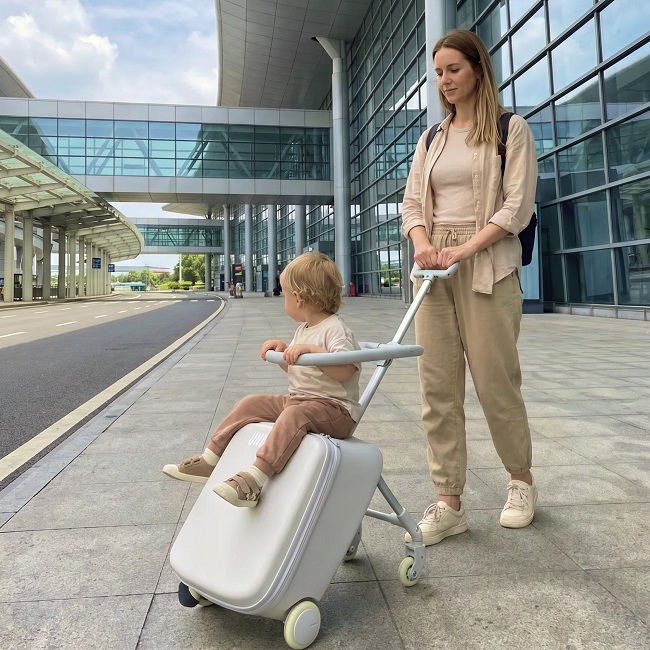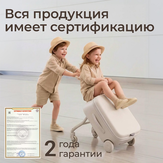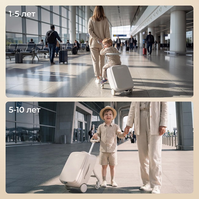 - Можно использовать как чемодан с сидением, просто чемодан, каталка для ребенка.