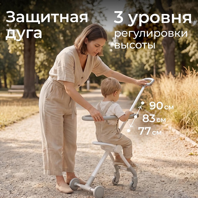 - Сидение для ребенка регулируется по высоте в 3 положениях.