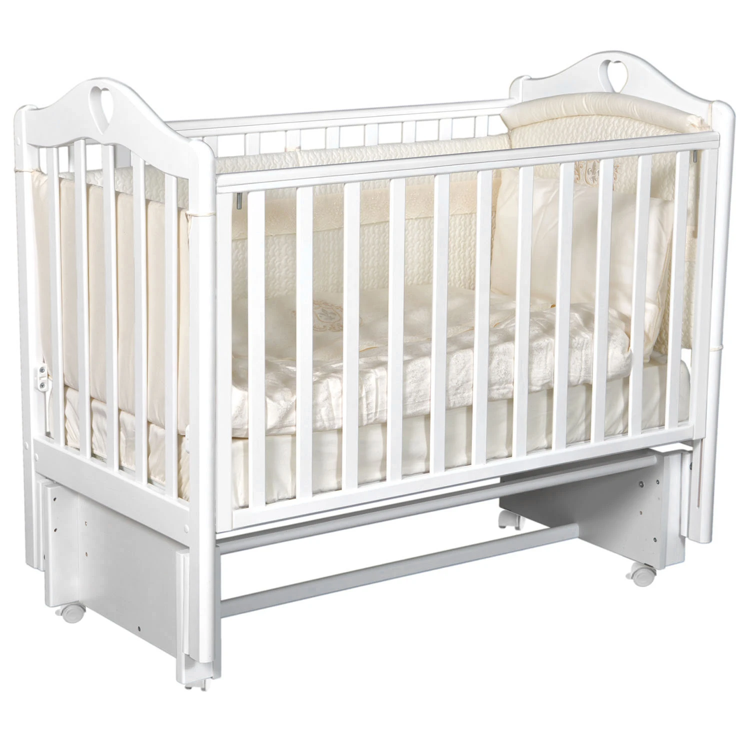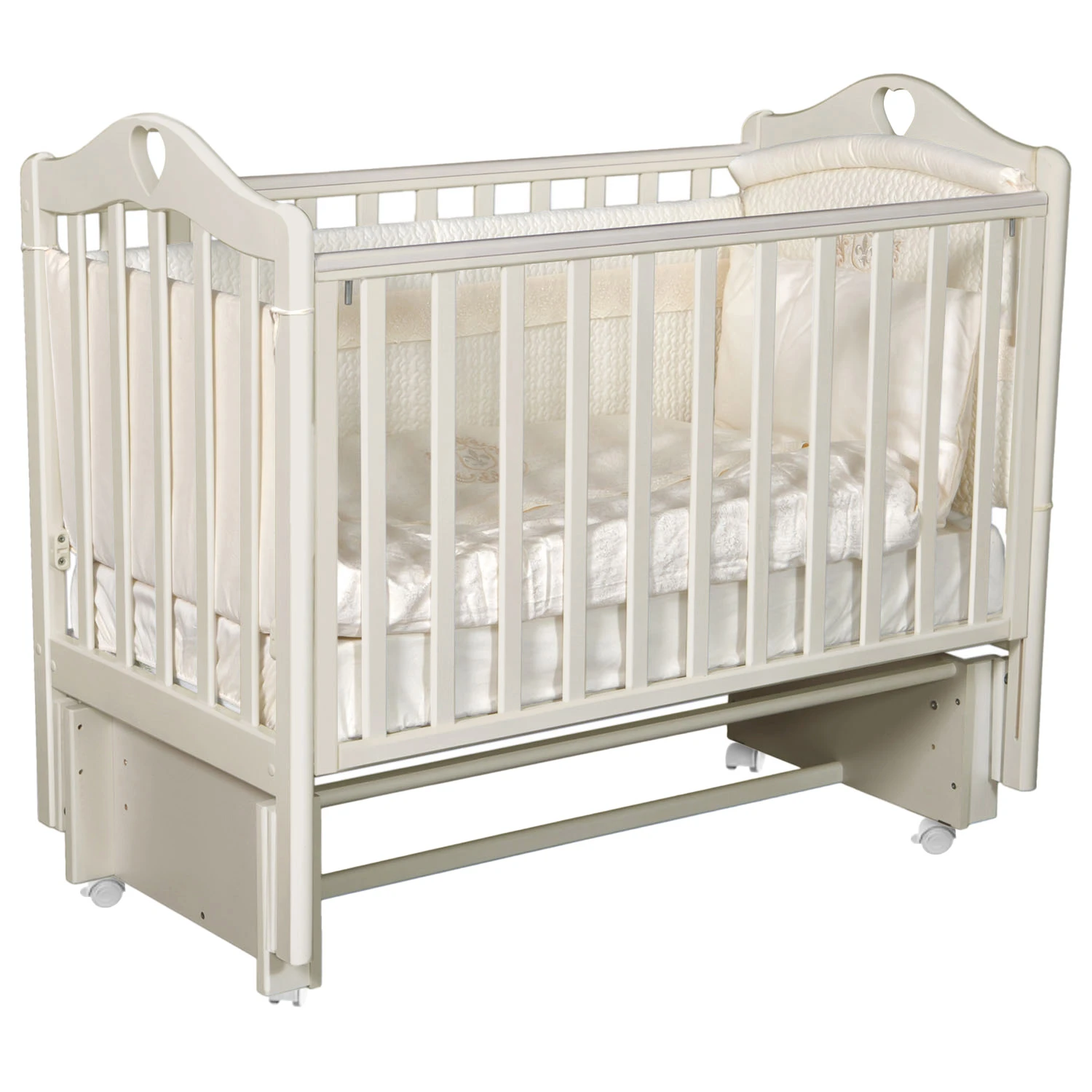Новинка 2025! Кроватка оснащена автоспуском "курок". Легкое регулирование высоты бортика и быстрое снятие бортика, без инструментов.