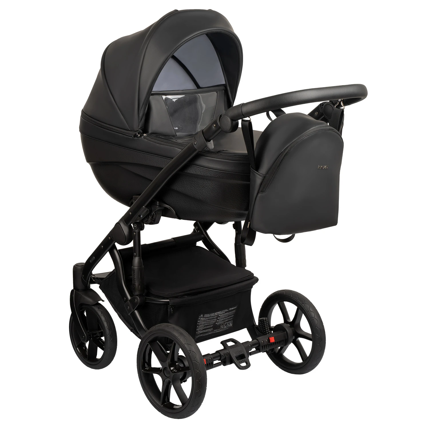 Коляска оснащены резиновыми бескамерными колесами. То есть они мягкие, всепроходимые, с прекрасной амортизацией, ноне прокалываются и не сдуваются. Просты в уходе. Та же коляска оснащены качественной амортизацией не только на колесах, но и на самой раме, что позволит настроить ход коляски в зависимости от дорожного покрытия и веса ребенка. Большая корзина полностью закрывает вещи, которые вы взяли на прогулку от пыли и грязи. Тормоз в виде педальки быстро фиксирует коляску и не пачкает обувь. При необходимости все колеса удобно снимаются. Коляска имеет компактное сложение и удобна для транспортировки.