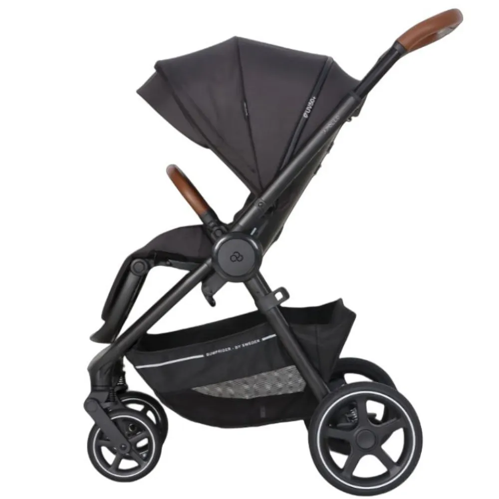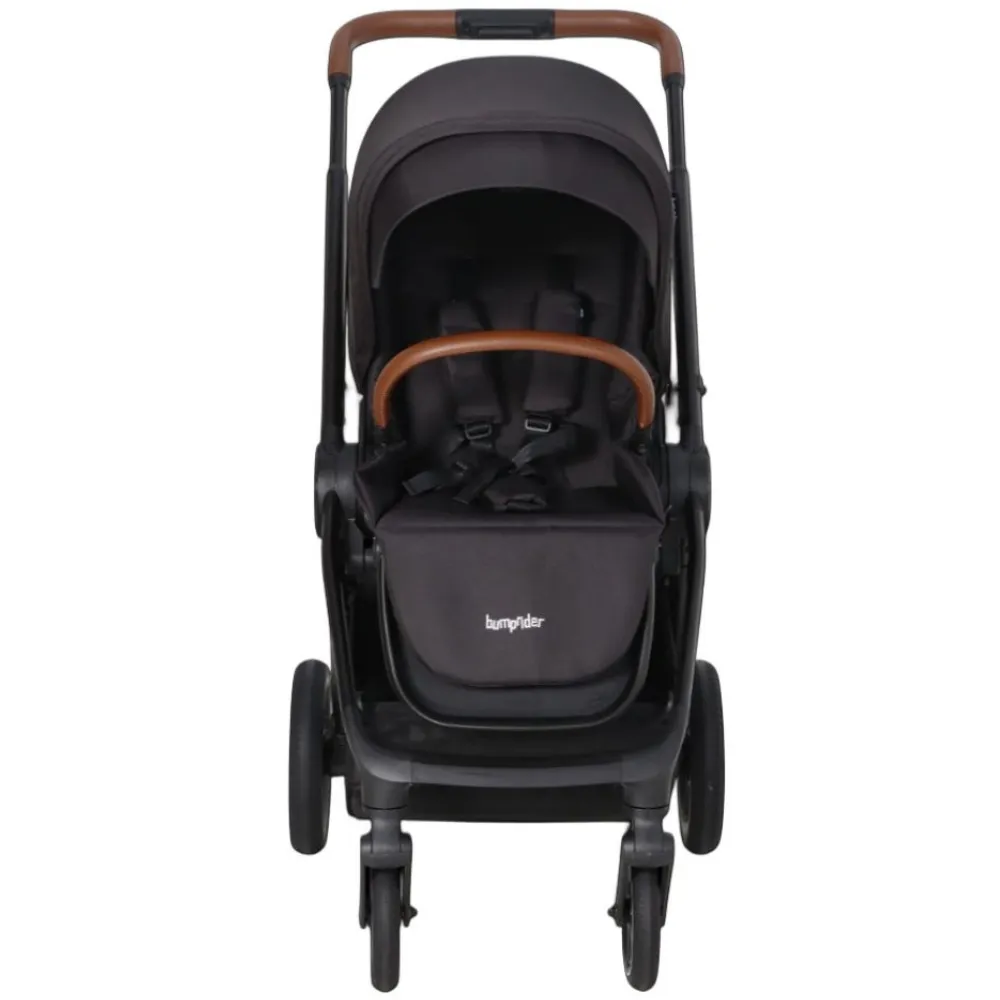 Bumprider Apollo имеет большие непрокалываемые колеса, телескопическую ручку и багажную корзину, в которой найдется место и для покупок, и для необходимых на прогулке вещей. При помощи адаптеров (входят в комплект) на шасси можно устанавливать автокресло группы 0+.