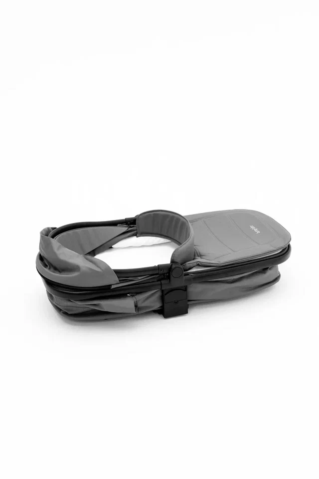 Просторная люлька с мягким матрасиком создаст у новорождённого ощущение нахождения у мамы на руках. Для защиты от солнца и ветра капюшон можно расширить, а для дополнительной циркуляции воздуха предусмотрена вентиляция капора и изголовья. Люлька компактно складывается (84,5х41,2х14 см), что облегчает хранение и транспортировку.