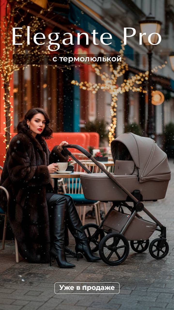 В комплект коляски Elegante Pro входят: дождевик, москитная сетка, стильная сумка с термокарманом, подстаканник, пеленальный матрасик