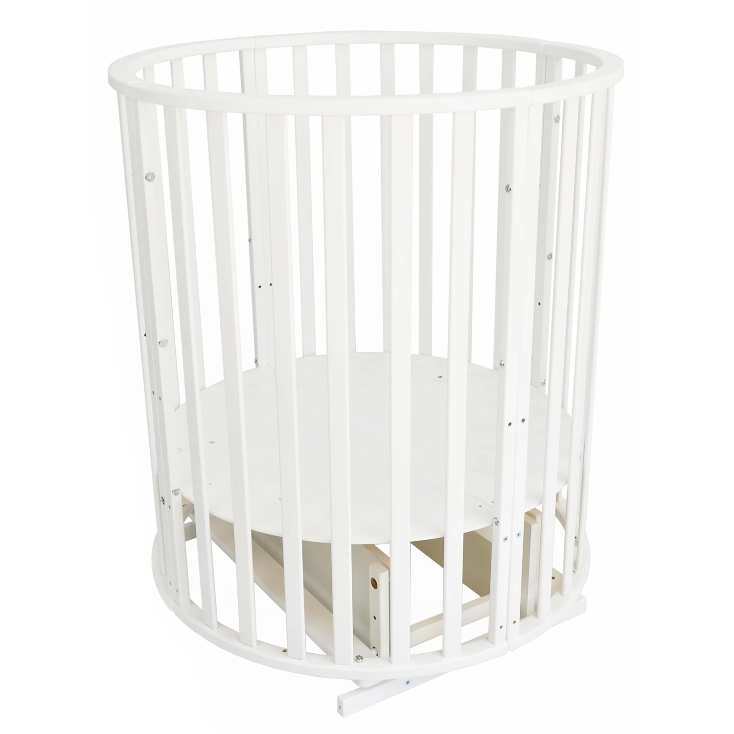 - 6 в 1: круглая колыбель, овальная кроватка, диванчик, приставная кровать, манеж и комплект мебели (стол и 2 стульчика).