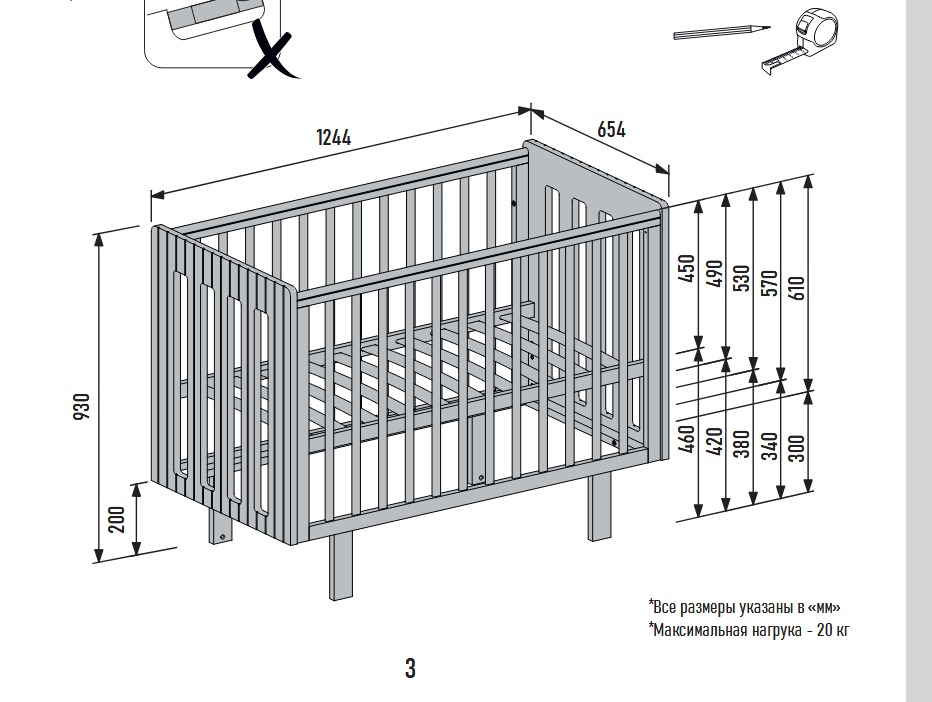 - Передний бортик легкосъемный и регулируемый по высоте.
