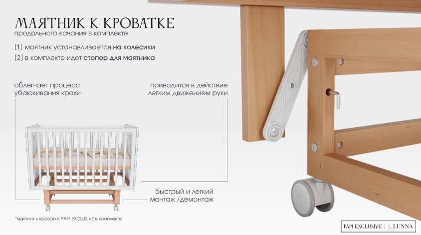 Детская кровать Incanto PAPI EXCLUSIVE (Инканто папи эксклюзив) - обновленная версия кроватки 2025 года с повышенный функционалом. Современная, стильная кровать для ребенка с рождения до 3-4 лет, дополненная маятником с колесами и съемными рейками. Идеальное сочетание простоты, функционала и качественных материалов.