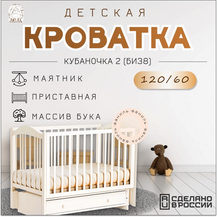 Детская кровать Лель-Кубаньлессстрой Кубаночка-2- качественная кроватка из массива бука с легкосъемным передним бортиком, маятником и большим ящиком. Кроватка отличается современным функционалом и качественными материалами, которые обеспечат удобное и беспроблемное пользование кроваткой очень длительное время.
