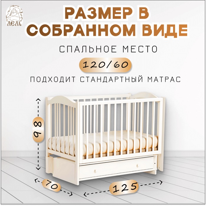 - Спальное ложе 120х60 см подойдет для ребенка с рождения до 3-4 лет.