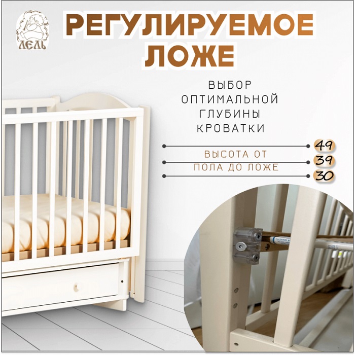 Высота кроватки регулируется в 3-х положениях в зависимости от возраста ребенка. Для новорожденного ребенка удобно самое верхнее положение спального ложа. Родителям не придется сильно наклоняться к малышу, удобный и легкий доступ. Но, по мере взросления ребенка, спальное место необходимо опускать, чтобы обезопасить ребенка от выпадения с кроватки.