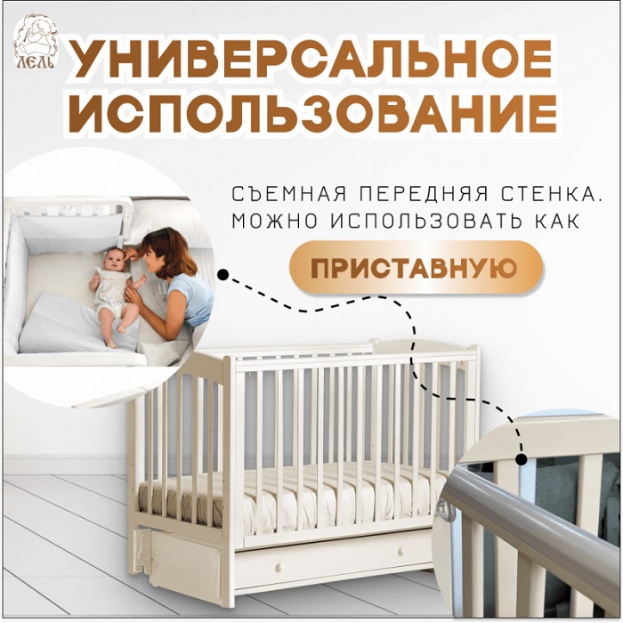 Детская кровать Лель-Кубаньлессстрой Кубаночка-3 - кровать для новорожденного сочетает в себе высокое качество, функциональность и современный дизайн.
