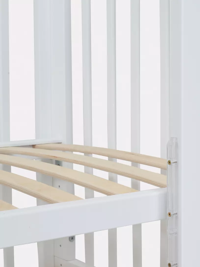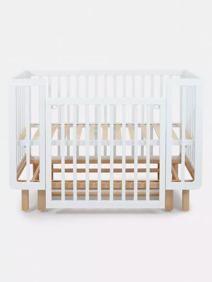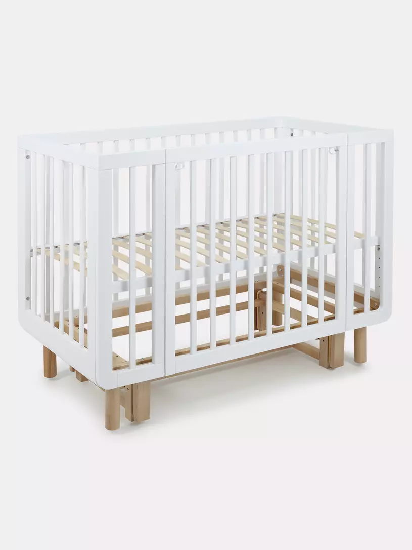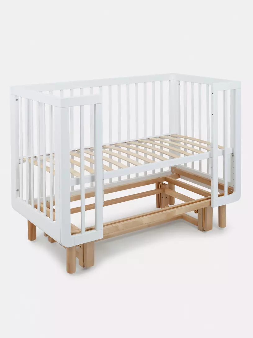 Для малыша кроватка представляет собой безопасное пространство с классическими размерами 120х60 см. Спальное ложе можно отрегулировать под высоту вашей кровати, а так же в зависимости от возраста ребенка. Передний бортик -автостенка, легко регулируется по высоте или полностью снимается за считанные секунды, превращая кроватку в приставную или диванчик для ребенка от 2 лет.