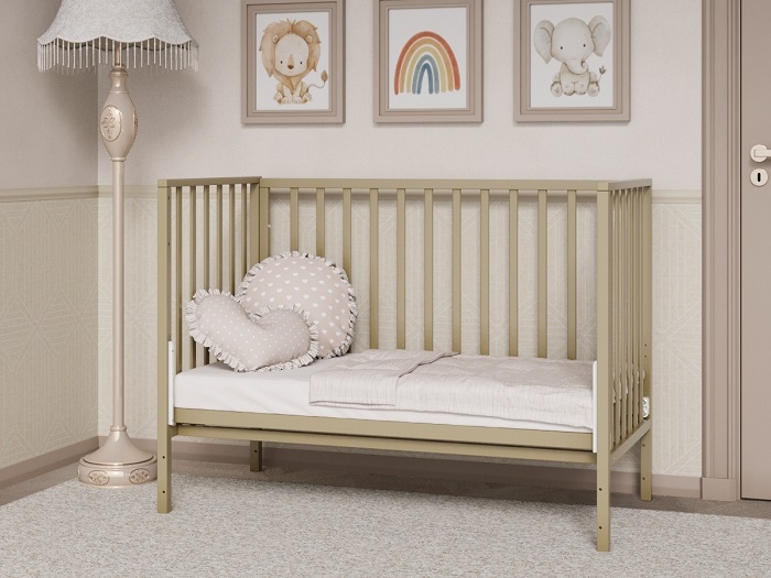 Кровать Hollie регулируется по высоте, а для удобства родителей оснащена автостенкой. Вы сможете быстро отрегулировать высоту переднего бортика, или полностью его снять за считанные секунды, без инструментов. Без переднего бортика кроватку можно использовать как приставную или как диванчик для подросшего ребенка. Бортики оснащены антигрызунками, чтобы защитить детские зубки от соприкосновения с деревом.