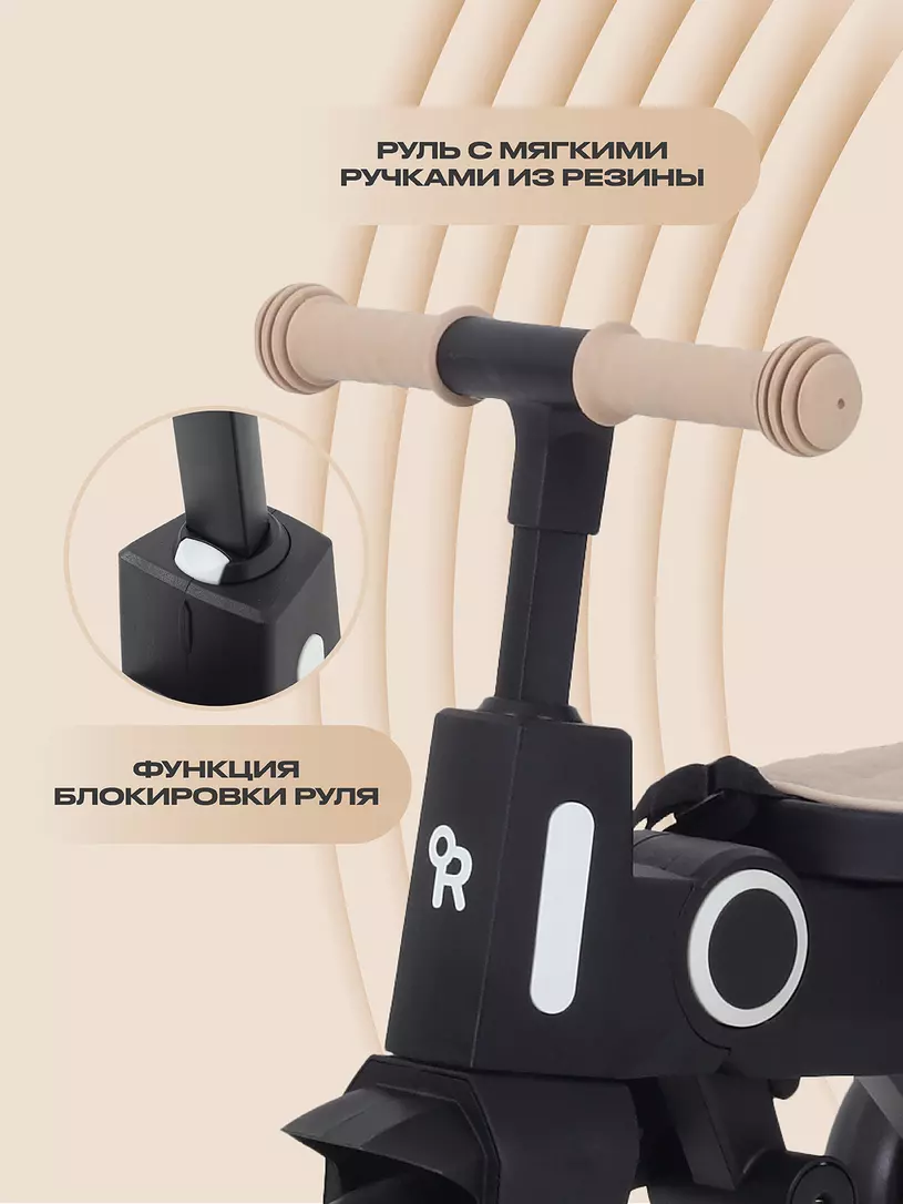 Велосипед оснащен качественными резиновыми колесами, которые позволят наслаждать прогулками не только по асфальту, но и в парках и по бездорожью. Для родителей с маленьким ребенком предусмотрена телескопическая ручка с удобной регулировкой по высоте.