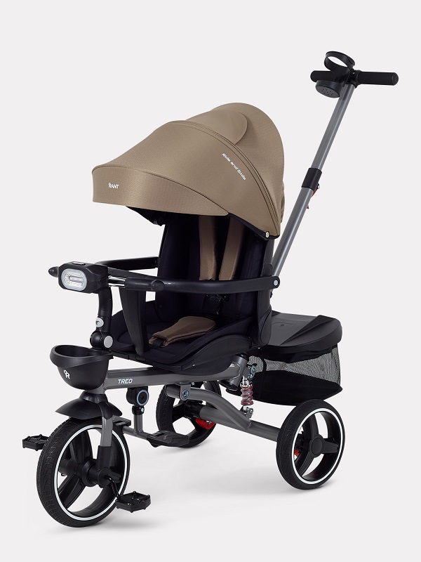 Детский велосипед RANT TREO RB203 (РАНТ ТРЕО) - детский велосипед-коляска для ребенка от 1 годика, с наклоном спинки и поворотным сидением. Прекрасная замена коляски на теплое время года. Такой велосипед сделает прогулки более увлекательными и активными. Преимущество велосипеда в поворотном сидении с хорошим наклоном спинки. В любое время вы сможете не только быстро повернуть ребенка к себе, но и создать все условия для комфортного отдыха и даже сна. При этом в данной модели велосипеда, все как в коляске - бампер ограничитель, ремни безопасности, подножка для малышей которые не достают до педалей, и полноценный капюшон от небольшого дождя или солнца. Когда ребенок подрастет, все дополнительные элементы снимаются, для более облегченного варианта для самостоятельных поездок.