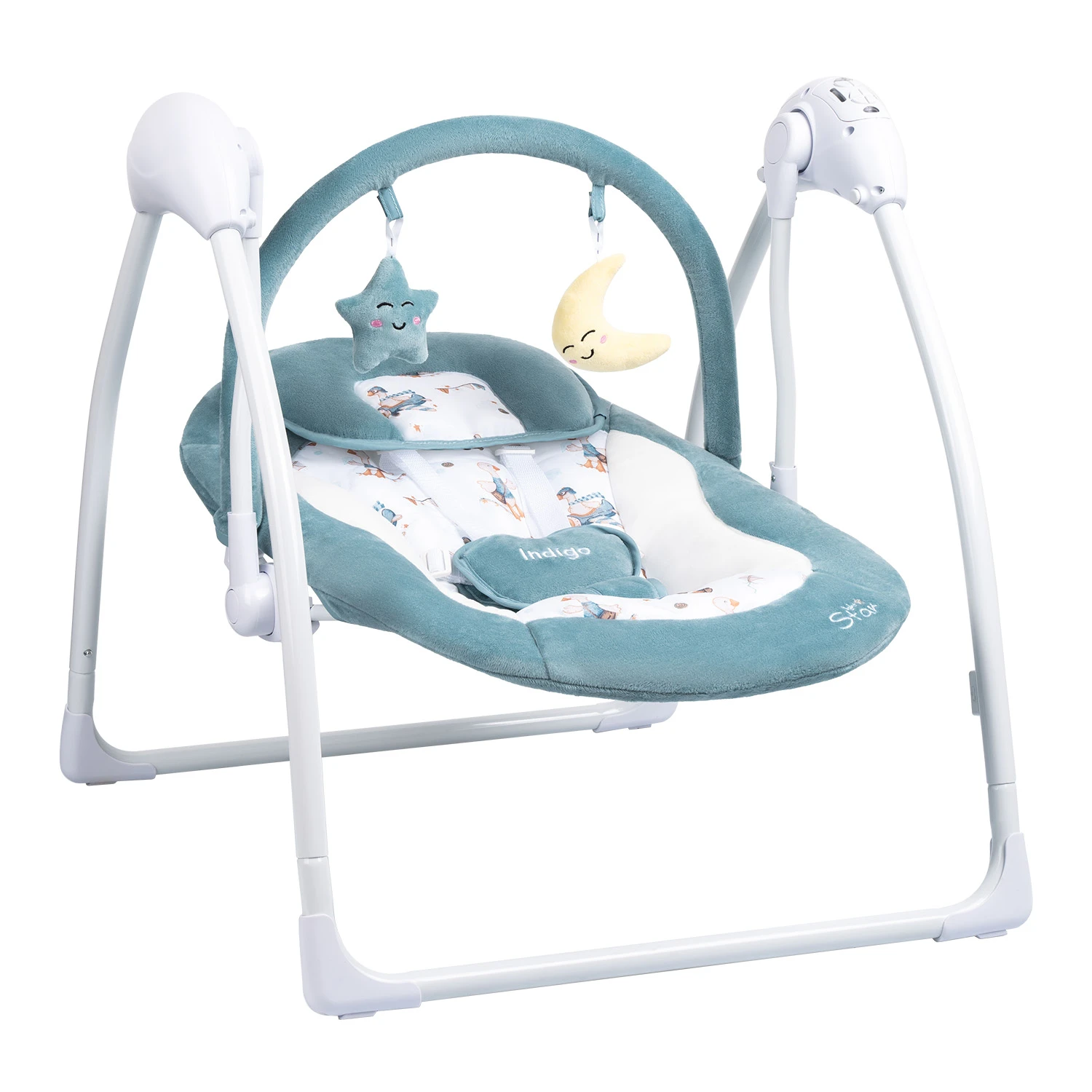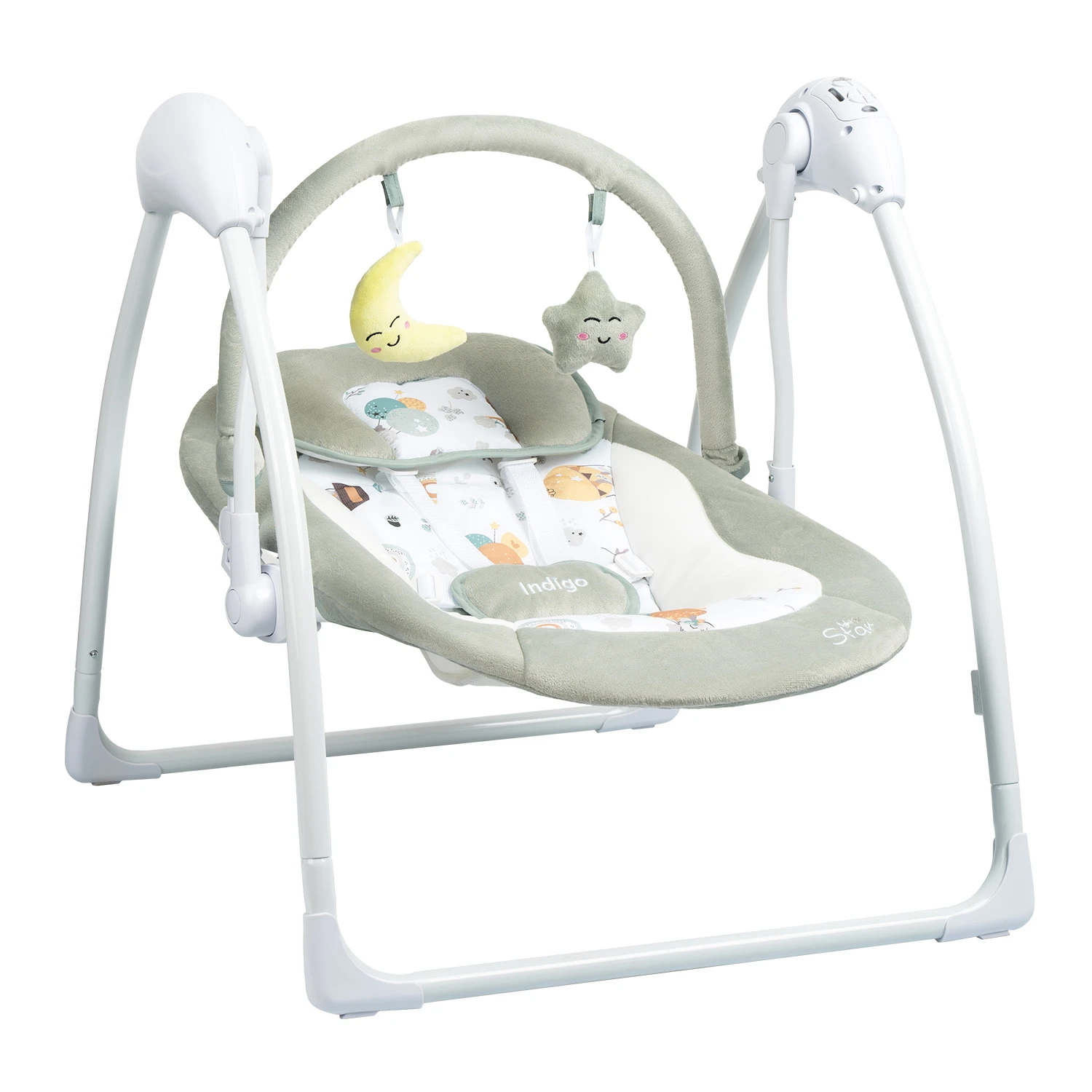 Электронные качели Indigo STAR light (индиго стар лайт) - надёжное и удобное решение для комфортного времяпрепровождения ребенка с рождения до 9кг. Большим преимуществом качелей является их функциональность: 5 скоростей качания, 15 встроенных мелодий, 5 звуков природы, таймер укачивания, возможность регулировки громкости и фиксации качания. STAR Light работает как от батареек, так и от USB, что делает их универсальными как для дома, так и для путешествий.