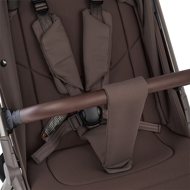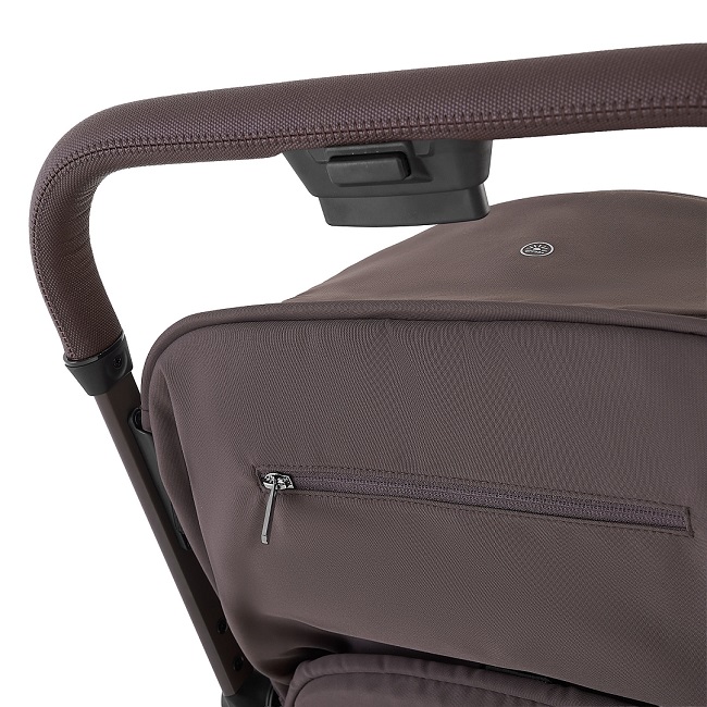 Ручка коляски покрыта премиальной экокожей и имеет универсальный хват, подходящий для родителей любого роста.