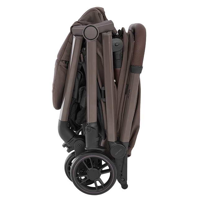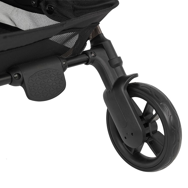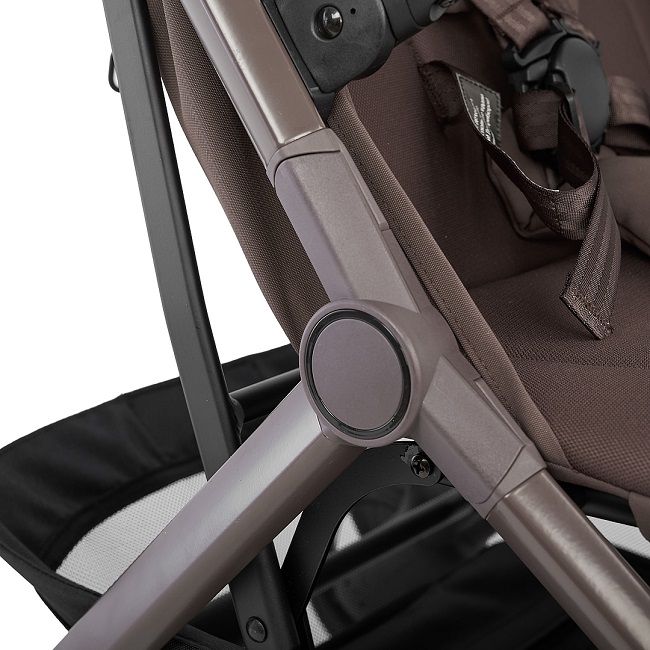 По центру ручки расположена кнопка сложения, которая превращает коляску в удобный переносной аксессуар.