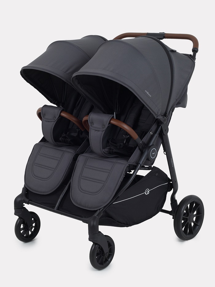 Коляска Rant Twinny для двойни (Рант Твинни) - красивая и функциональная коляска для двоих детей: двойняшек или погодок от 6 месяцев. Несмотря на то, что коляска рассчитана для двоих детей она не смотрится массивно, очень компактная и весит всего 14 кг. Главное ее преимущество - это очень комфортные сидения с индивидуальными настройками спинки и подножки. Качественная, приятная на ощупь ткань внутри коляски и водонепроницаемая и ветрозащитная обивка снаружи. Удобные ремешки безопасности имеют регулировку по высоте и ширине. У каждого ребенка будет свой бампер-ограничитель, выполненный из качественной эко кожи. Коляска оснащена большими капюшонами-батискафами, которые практически полностью закрывают детей от любой непогоды, при этом есть удобные смотровые окошки для мамы.