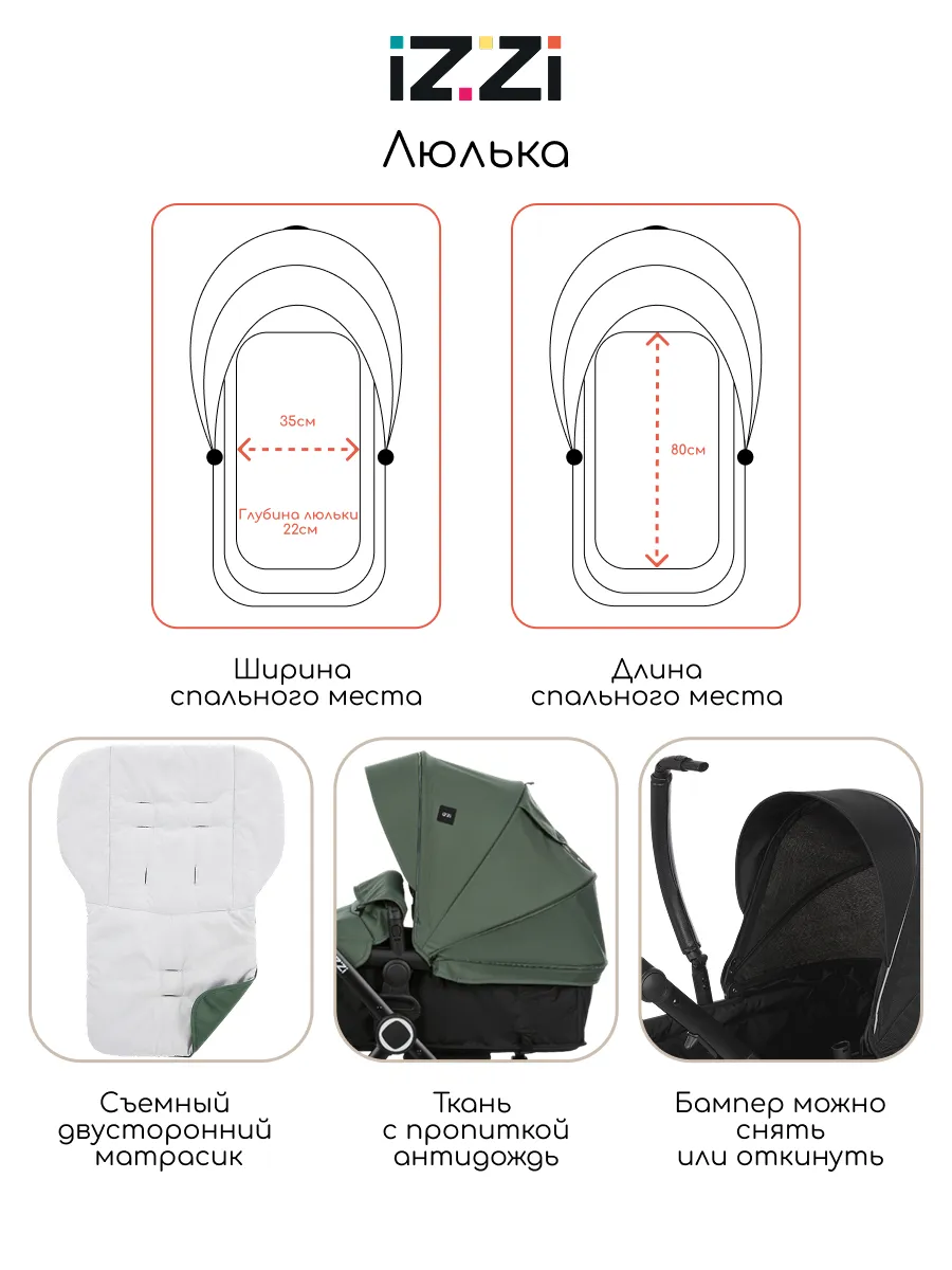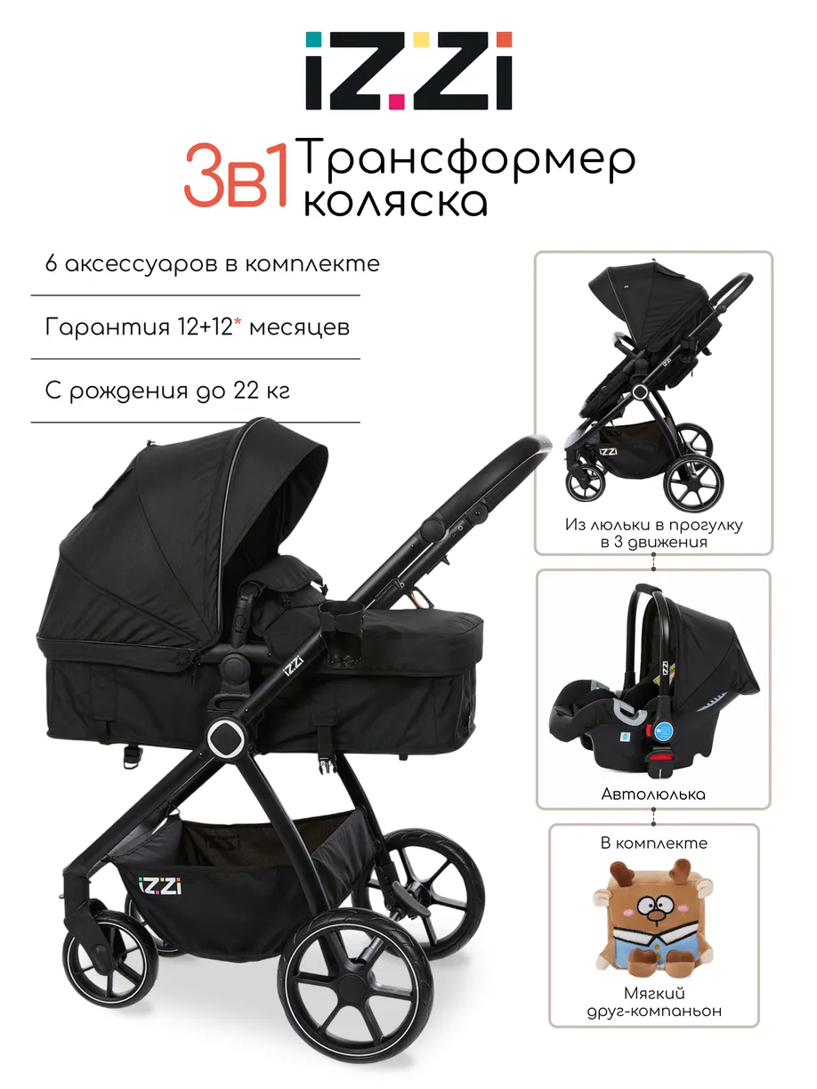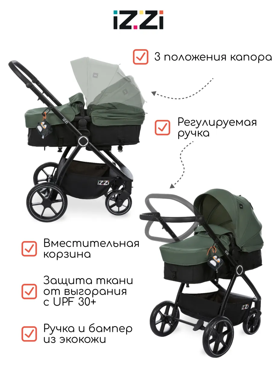 Коляска - трансформер Izzi с автокреслом 3в1 (Иззи) - новинка на рынке детских колясок и сразу множество положительных отзывов и откликов от молодых родителей. Коляска, созданная для ежедневных прогулок с ребенком с рождения до 3 лет, в любую погоду, учитывающая не только комфорт для ребенка, но и удобство для родителей.