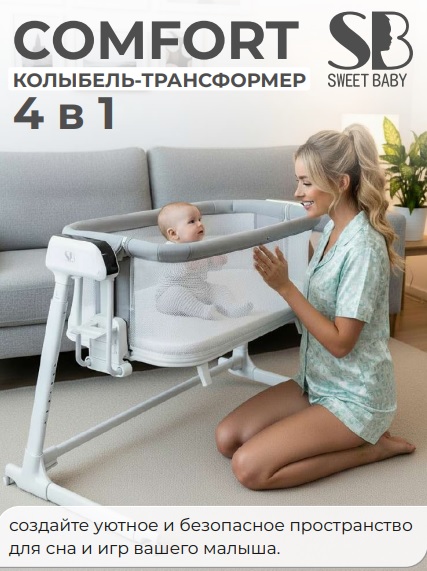 Колыбель Sweet Baby Comfort (Свит Беби Комфорт) - умная колыбелька для ребенка с рождения до 3 лет с датчиком плача, съемной люлькой и возможностью использования как манеж. Электронная колыбелька поможет родителям в создании уютного и безопасного пространство для сна и бодрствования ребенка, а так же поможет успокоить ребенка без укачивания на руках. Компактная, легкая , ее удобно перевозить по квартире, брать в поездки и в гости.