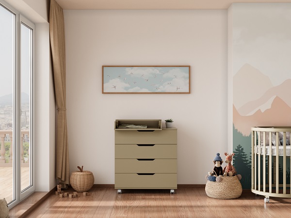 Детский комод LUNNA ЮГ 800/4 оснащен пеленальной доской, которая быстро превращает комод в пеленальный, образуя безопасную и удобную поверхность для ребенка. Вам будет удобно переодевать ребенка, проводить гимнастику и массаж, пеленать или проводить другие гигиенические процедуры для малыша. По мере роста ребенка пеленальная доска снимается, без следов на поверхности комода.