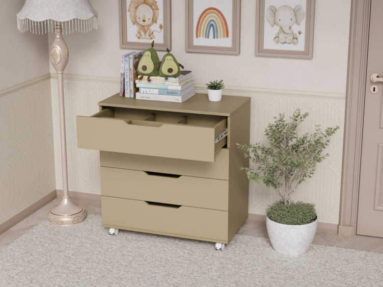 Колеса на комоде позволят передвигать комод по комнате, облегчая уборку и перестановку при необходимости.