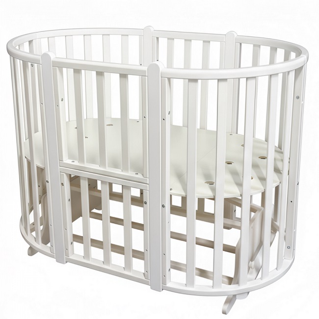 Кровать Антел Иван Царевич - детская кровать - трансформер с возможностью трансформации кроватки в круглую колыбельку, овальную кроватку, диванчик, манеж. Кроватка оснащена поперечным маятником, который позволит более быстро успокоить ребенка и настроить на сон. Кроватка рекомендована с рождения ребенка до 3-4 лет.