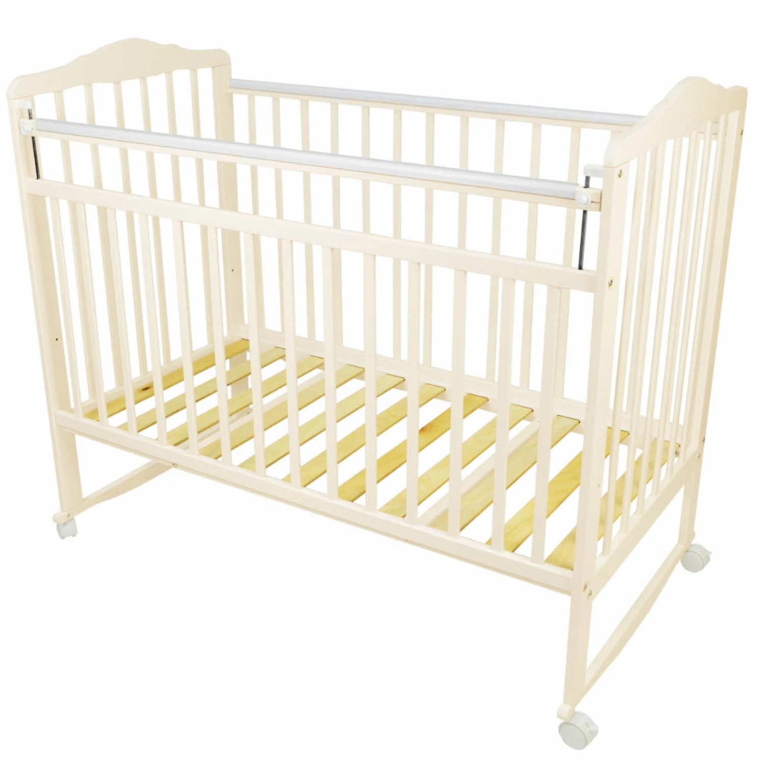 - В комплектацию включены колеса, благодаря которым, кроватку легко переместить, что обеспечивает дополнительное удобство для родителей.