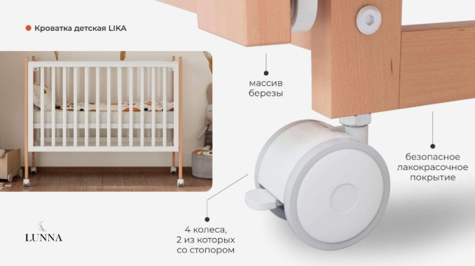 Особенности кровати Lunna Lika Exclusive с колесиками: