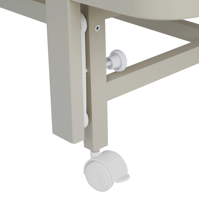 - 3 уровня положения ложа: 44,5 см, 38 см, 31,5 см (расстояние от пола до ложа без колес, без маятника); 50,5 см, 44 см, 37,5 см (с колесами).