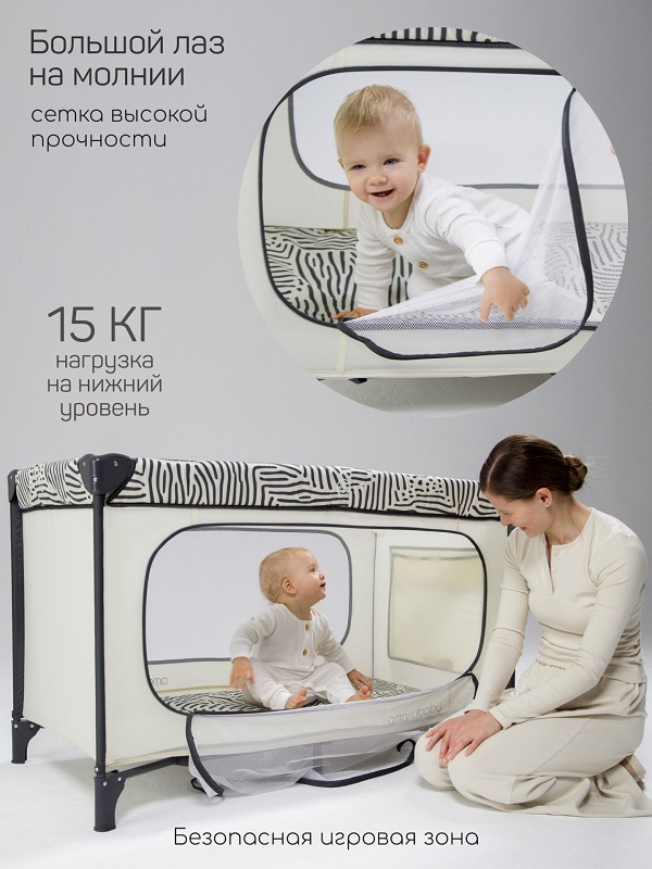 Манеж Amarobaby SMART имеет надежную и устойчивую конструкцию. Все уголки закрыты пластиковыми накладками, а бортики выполнены с мягким уплотнителем. Качественная обивка имеет стильный внешний вид, отличается прочностью и долговечностью, и не боится воды. Два бортика оснащены сетчатым материалом, чтобы вам было лучше видно ребенка, а ему вас.