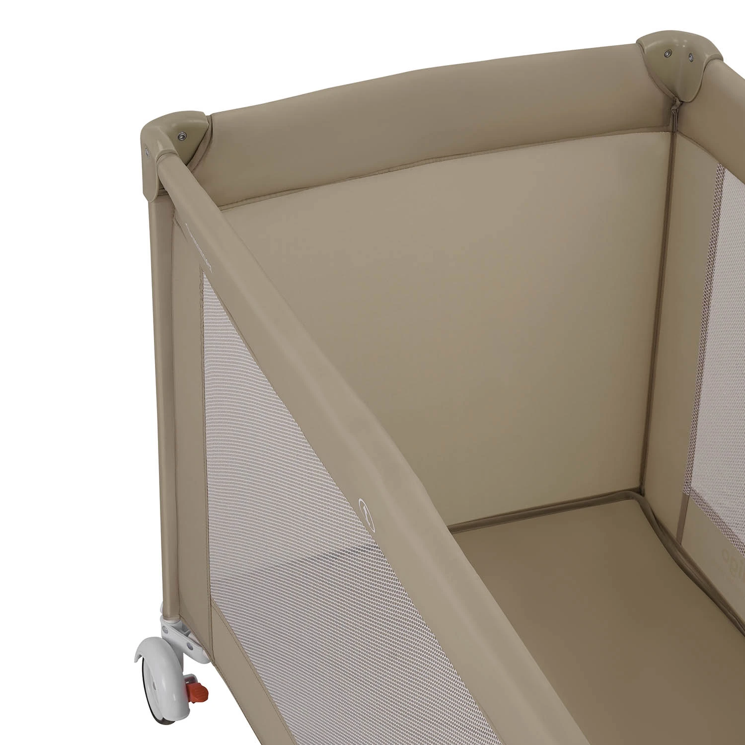 - сетчатые стенки позволяют присматривать за малышом, а когда кроха подрастет он сможет самостоятельно выбираться из манежа благодаря боковому лазу на молнии;