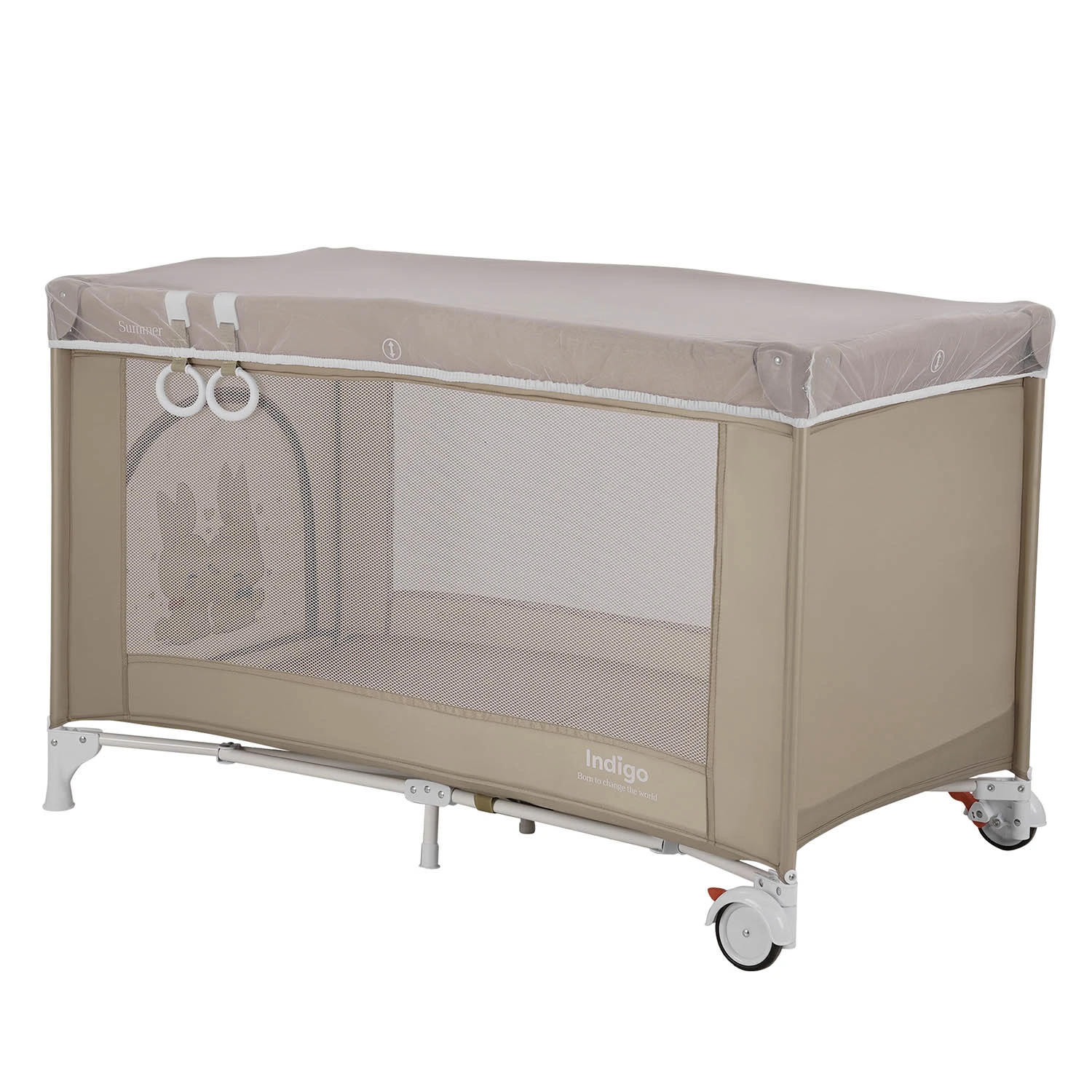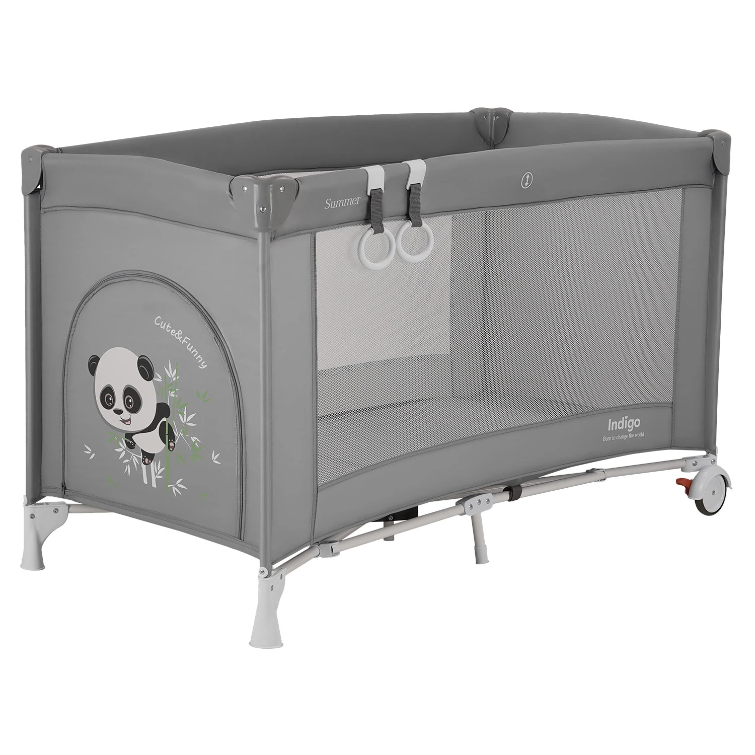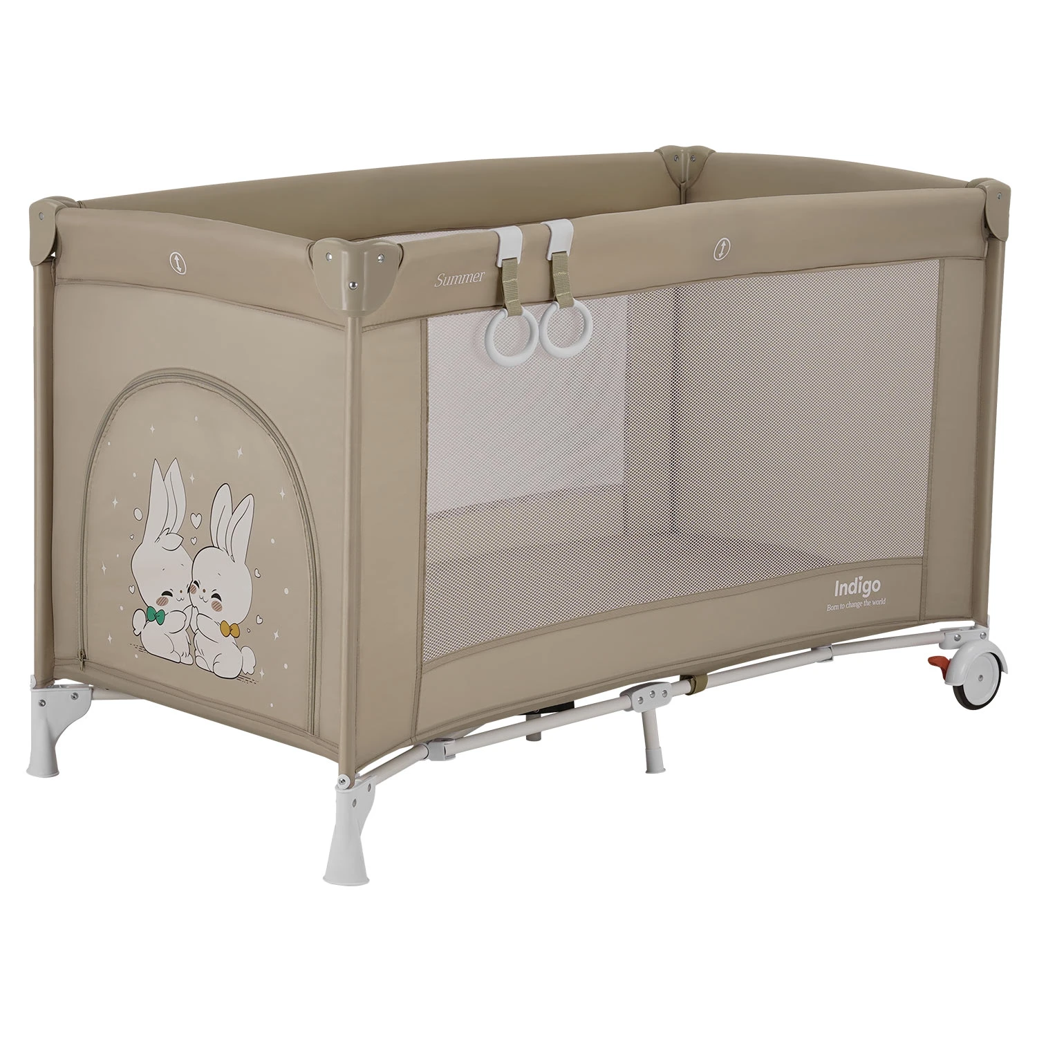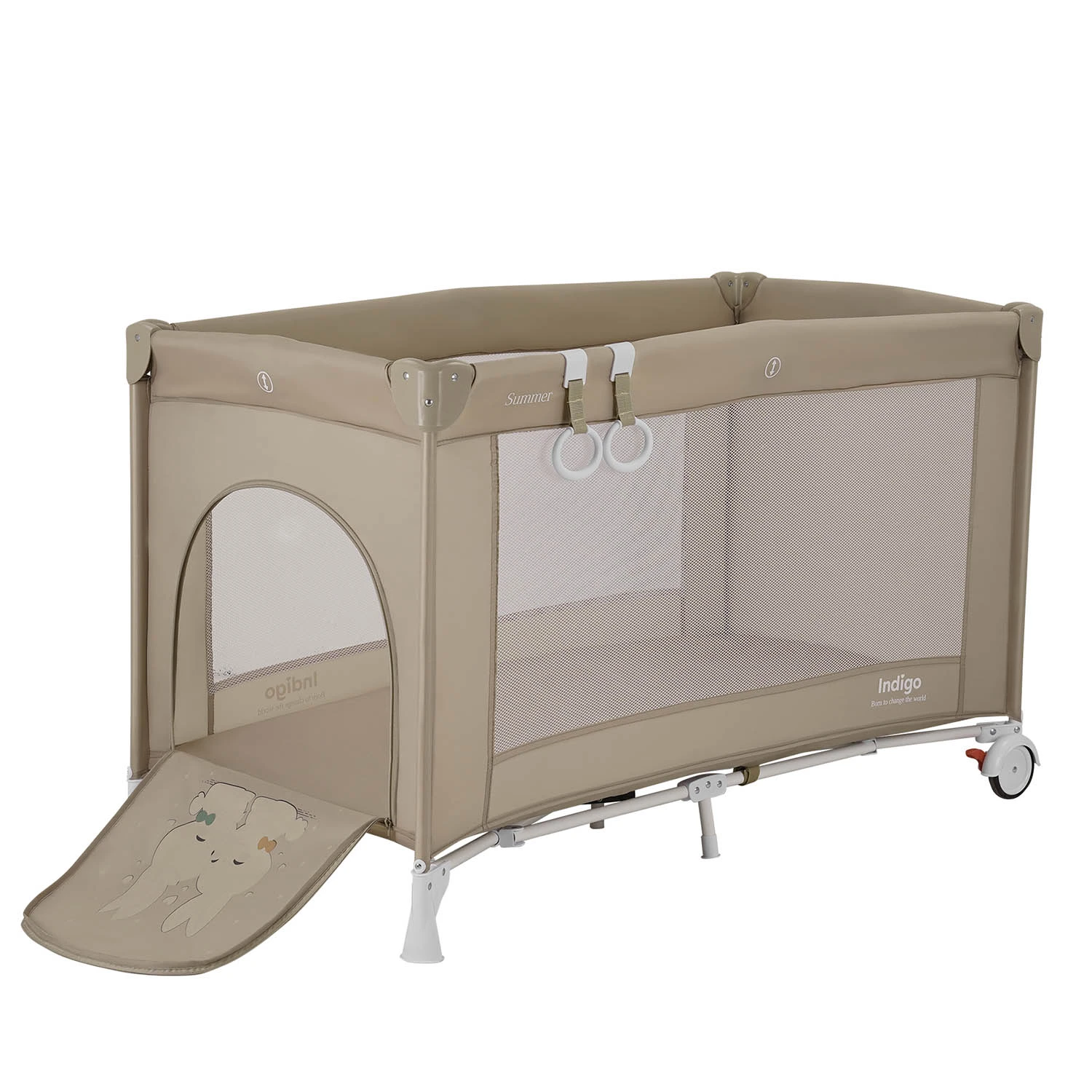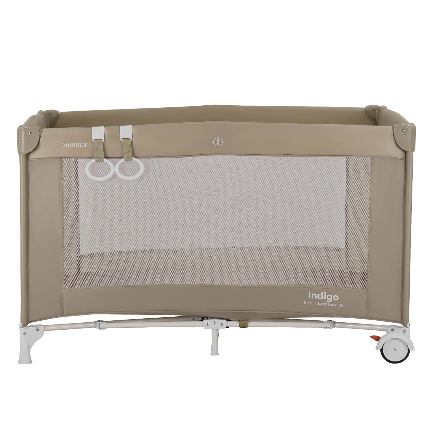 Манеж-кровать Indigo SUMMER (Индиго Саммер) - максимальный комфорт для вашего крохи. Это удобная складная кроватка для полноценного сна ребенка до 3 лет (до 20 кг), а так же безопасное пространство для самостоятельных игр. Преимущество модели в том, что она очень быстро раскладывается и складывается, занимает мало места и удобно перемещается за счет колес. Куда вы не отправились с ребенком, у ребенка всегда будет удобное и комфортное спальное место. Поездка к родственникам или друзьям, поезд, отель, пикник на природе - нет ни чего проще взять с собой манеж кровать, в котором малыш может играть и спать, при этом всегда находится в безопасности. Спальное /игровое пространство составляет 120х60 см. Сетчатые боковые стенки обеспечат обзор за ребенком и отличную вентиляцию. С одной стороны манежа предусмотрен лаз на молнии. В комплекте с манежем идет транспортировочная сумка - чехол, москитная сетка и кольца, чтобы помочь малышу самостоятельно встать на ножки.