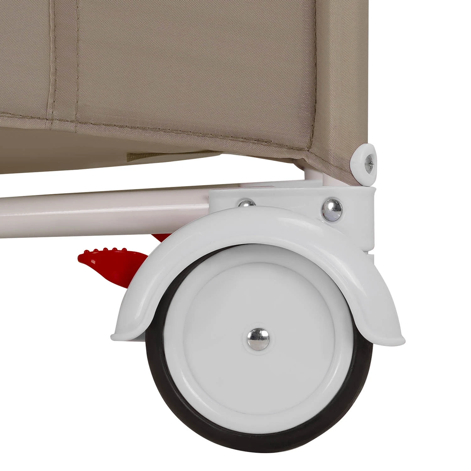 - оснащен двумя колесиками с фиксаторами, с помощью которых манеж можно перемещать по квартире;