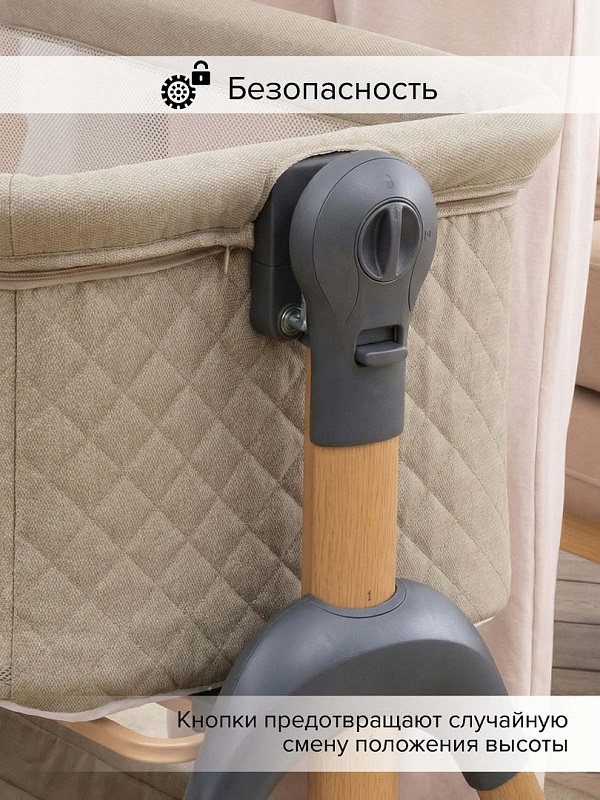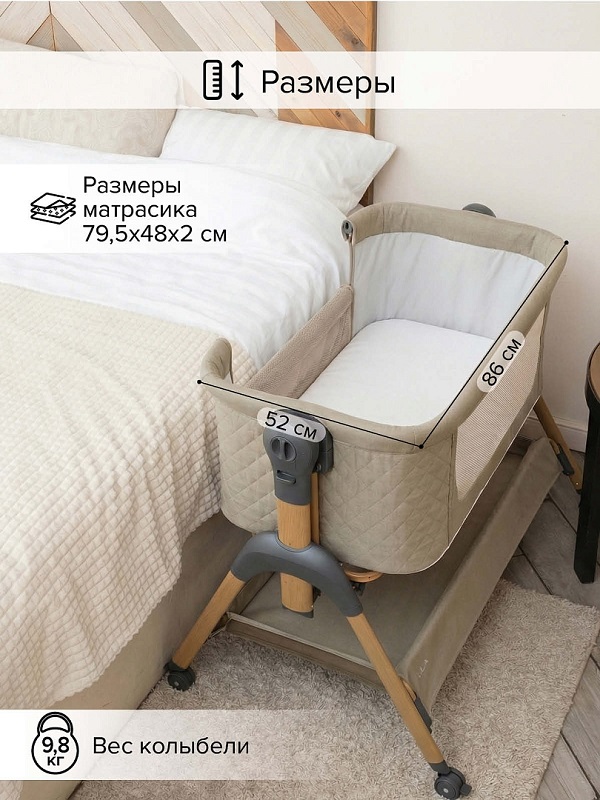 - устанавливается вплотную к кровати родителей и надежно к ней крепится с помощью крепежных ремешков в комплекте