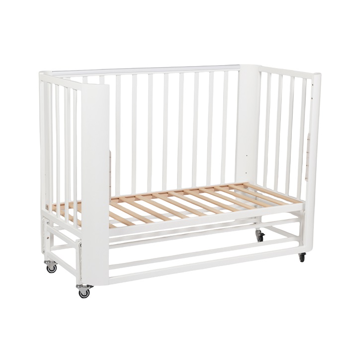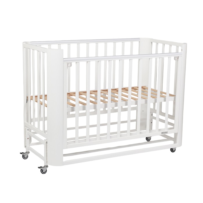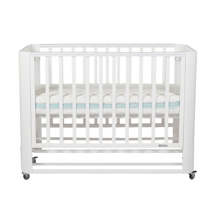 Кровать с маятником и колесами не утяжеляет внешний вид кроватки. Она выглядит легкой, компактной, стильной, минималистичной. Такой вариант кроватки прекрасно впишется в любой интерьер.