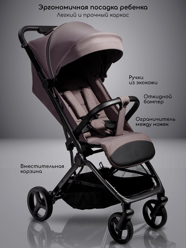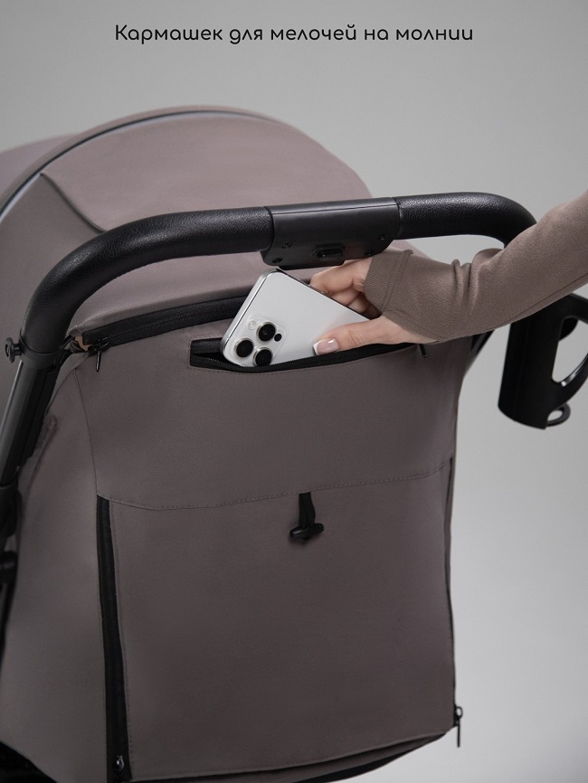 Максимальное удобство для вас и малыша достигается благодаря продуманным деталям: откидной бампер с вращением на 360 градусов позволяет легко посадить и вынуть ребенка из коляски. Удобная регулировка спинки позволит создать идеальное положение для сна и бодрствования. Магнитный замок обеспечивает надежное крепление ремней безопасности, а карман на молнии – идеальное место для хранения мелочей.