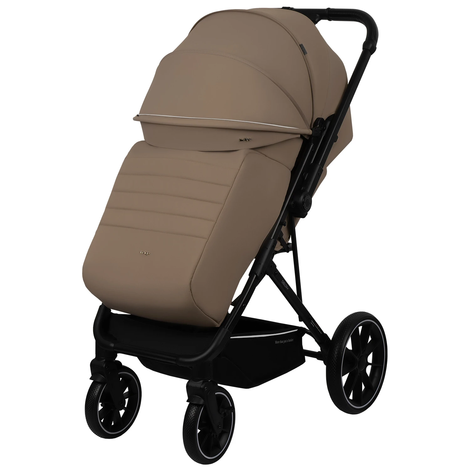 В коляске предусмотрено удобное сидение с почти горизонтальным наклоном спинки и поднимающейся подножкой. Ширина сидения в 37 см позволит ребенку чувствовать себя свободно в коляске, не зависимо от количества одежды. Регулировка спинки с помощью ремешка позволит легко и бесшумно настроить наклон спинки под потребности ребенка. Ребенок сможет комфортно сидеть, отдыхать, спать в коляске. Большой капюшон отлично закроет ребенка от непогоды, ветра, небольших осадков, особенно с новой водонепроницаемой тканью. Для удобства родителей на капюшоне предусмотрено смотровое и вентиляционное окошко. За безопасность ребенка отвечают ремни безопасности и легкосъемный бампер с покрытием из эко кожи.