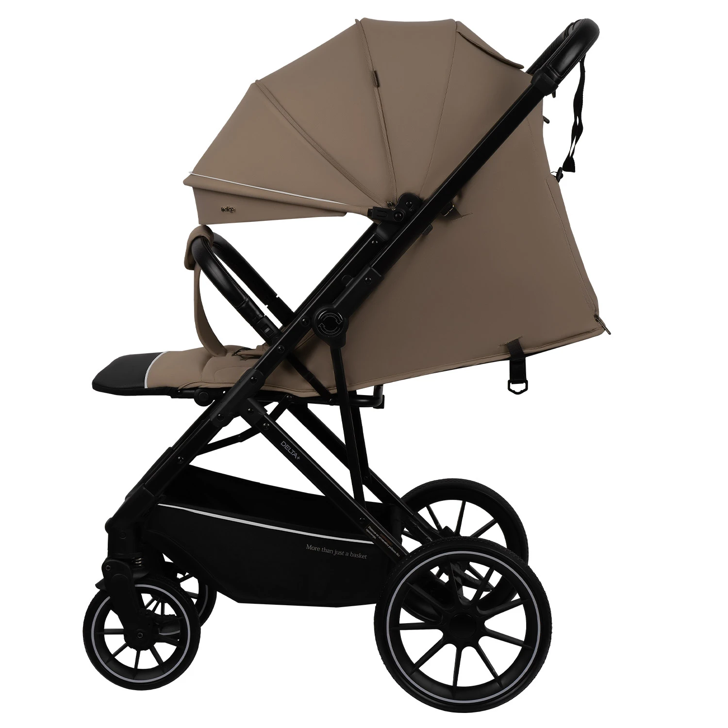 Коляска оснащена телескопической ручкой, что позволит настроить коляску под ваш рост. Удобная и просторная корзина позволит разместить в коляске все необходимые для прогулки вещи, покупки, игрушки.