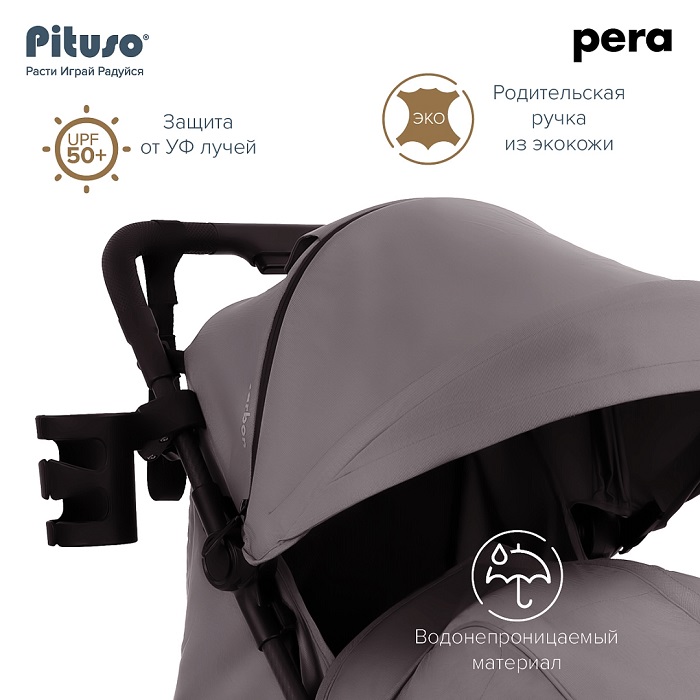 Прогулочная коляска PITUSO PERA (Питусо пера) - легкая, стильная детская коляска из карбоновой рамы, с компактным сложением, разрешенная для самолета. Коляска отлично подойдет для прогулок, путешествий и поездок на машине, поезде и самолете.