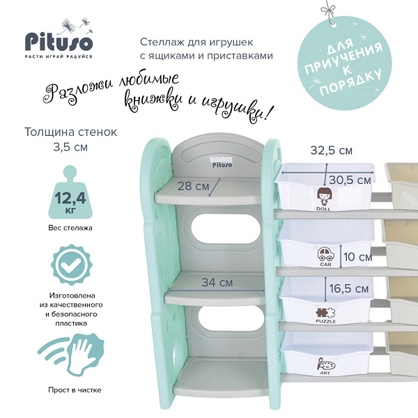 Купить Стеллаж для игрушек PITUSO 4 полки (питусо фанни) в нашем магазине очень просто — Вам достаточно оформить заказ онлайн на сайте или по телефону +7(925)266-83-06. Мы доставим товар в самое короткое время по Москве и Подмосковью (бесплатно до 10 км за МКАД). Так же отправляем в любой город России, в Армению, в Киргизию, в Крым, в республику Беларусь с помощью транспортной компании.