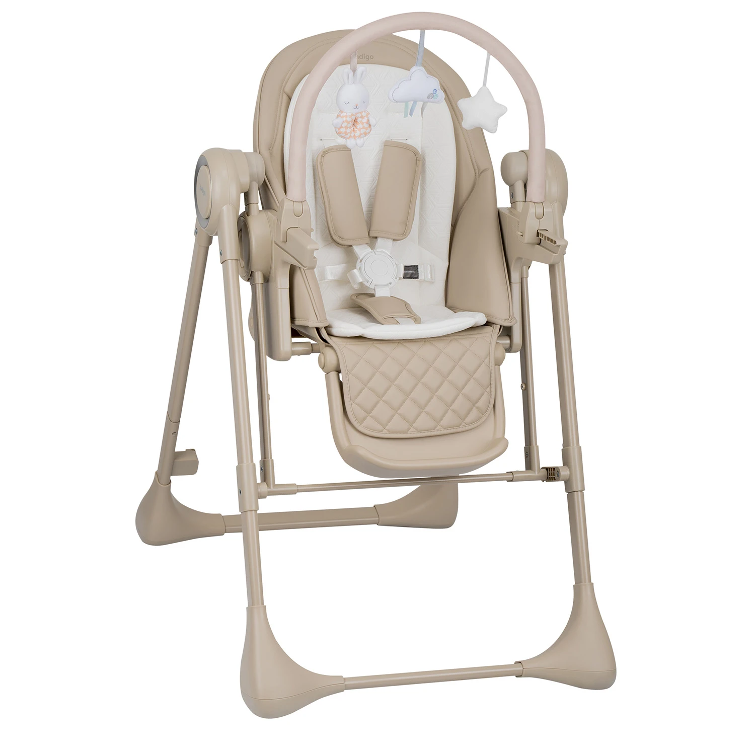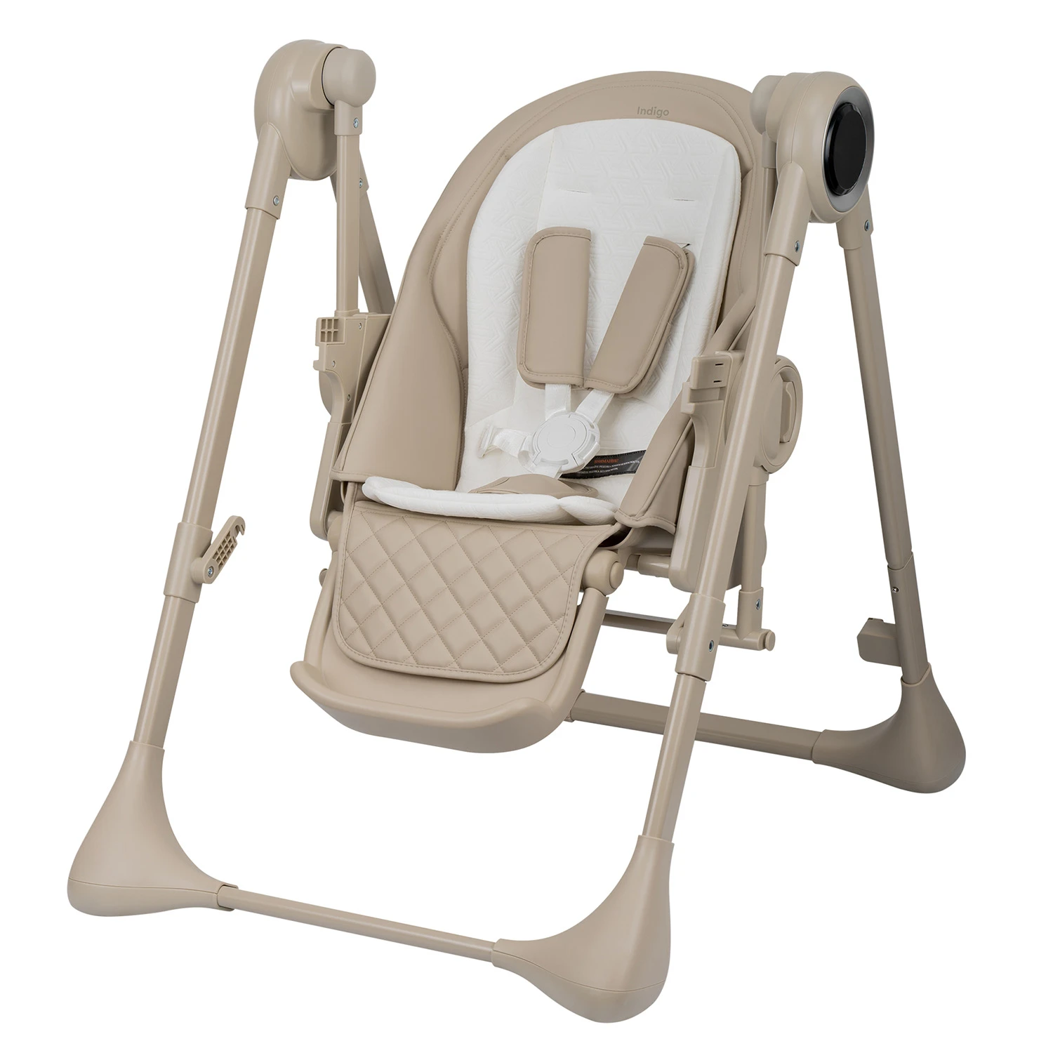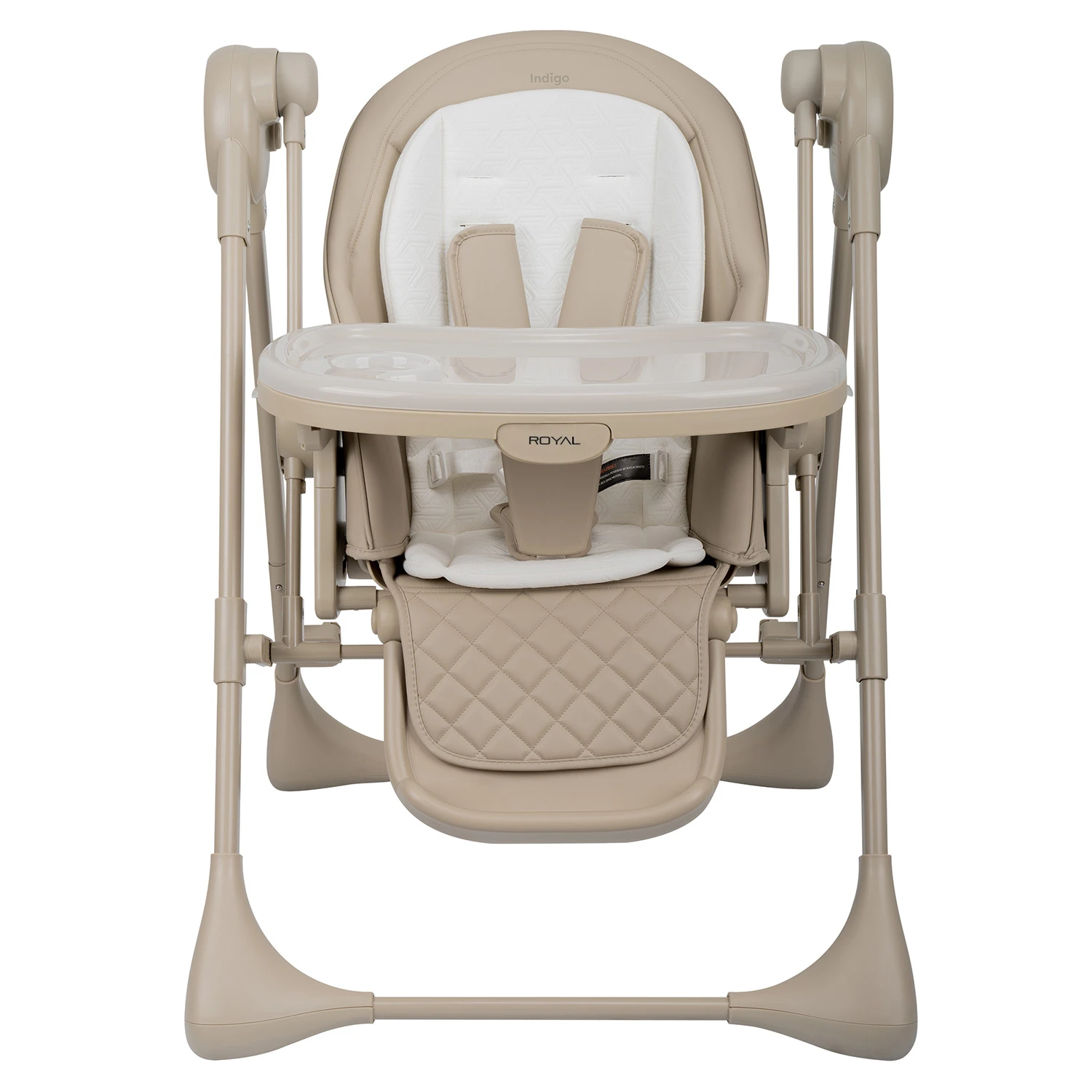 Стул для кормления Indigo ROYAL (Индиго Роял) - функциональный стульчик 2 в 1, который сочетает возможности стульчика для кормления и электронных качелей. Стульчик рассчитан на возраст ребенка от 6 до 36 месяцев: в вариации стульчика может использоваться детьми весом до 15 кг или возрастом до 3-х лет, в вариации качелей - малышами весом до 9 кг.