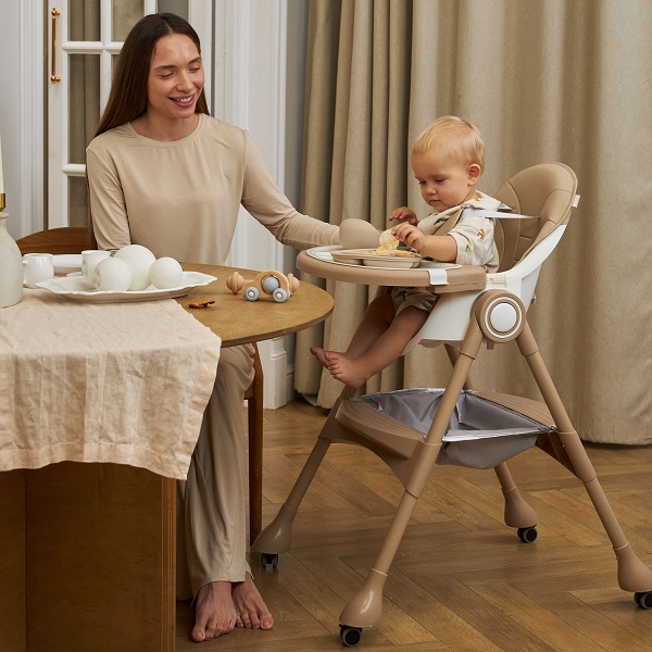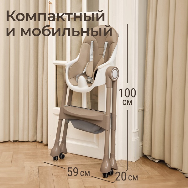 Устойчивость, закругленные углы стульчика для кормления на колесах исключают риск травмирования, создавая дополнительную защиту вашему малышу.
