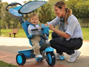 Велосипед для годовалого ребенка – это активная и очень энергозатратная прогулка. Даже если малыш особо ни чего не делает на велосипеде, не крутит педали, не нажимает кнопочки и не крутит руль, он познает мир. Велосипед даст ребенку отличный кругозор, общение и возможность контактировать с этим миром. Это очень здорово и интересно. Велосипед отлично подойдет для прогулки от площадки к площадке, недолгие прогулки, в том числе в магазин, поликлинику, парк, вечерний променад всей семьей.
