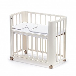 1. Детская небольшая кроватка-колыбелька на первые 6 месяцев (может быть на колесах, с опускающимся бортиком, приставная, с укачиванием).